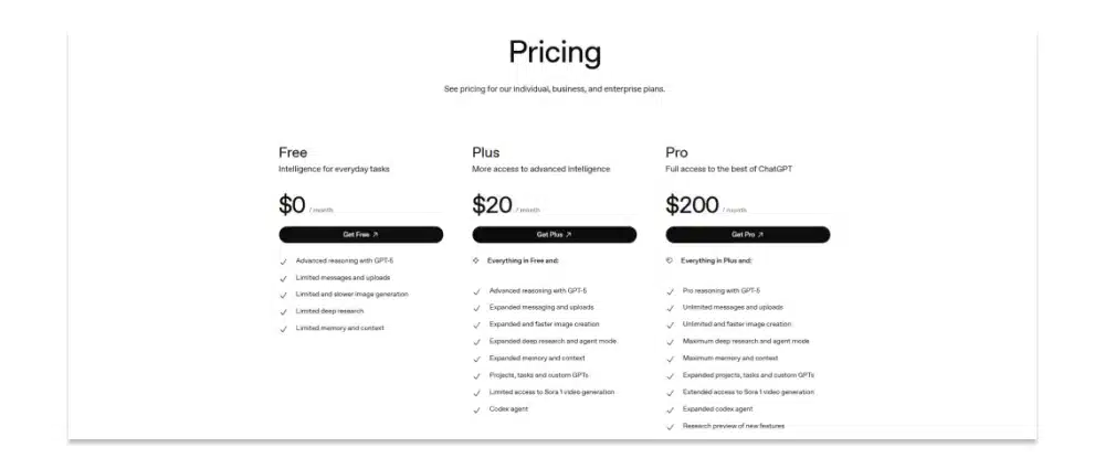 • Plus plan ($20/month): More capable models, faster responses, priority access, higher usage limits for complex work