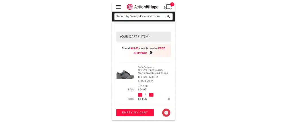 ActionVillage mobile-optimized checkout page with large, tappable buttons