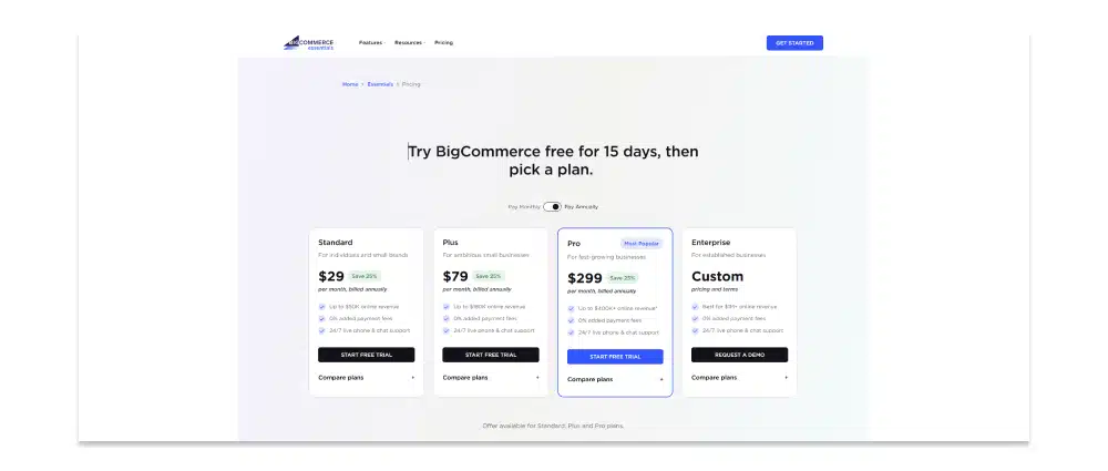 BigCommerce is ideal for large catalogs or B2B operations. Strong native features mean you’re less reliant on apps. Moreover, it’s great for products with lots of variants or complex pricing structures. This platform is better for brands planning to scale quickly without hitting Shopify’s transaction limits.